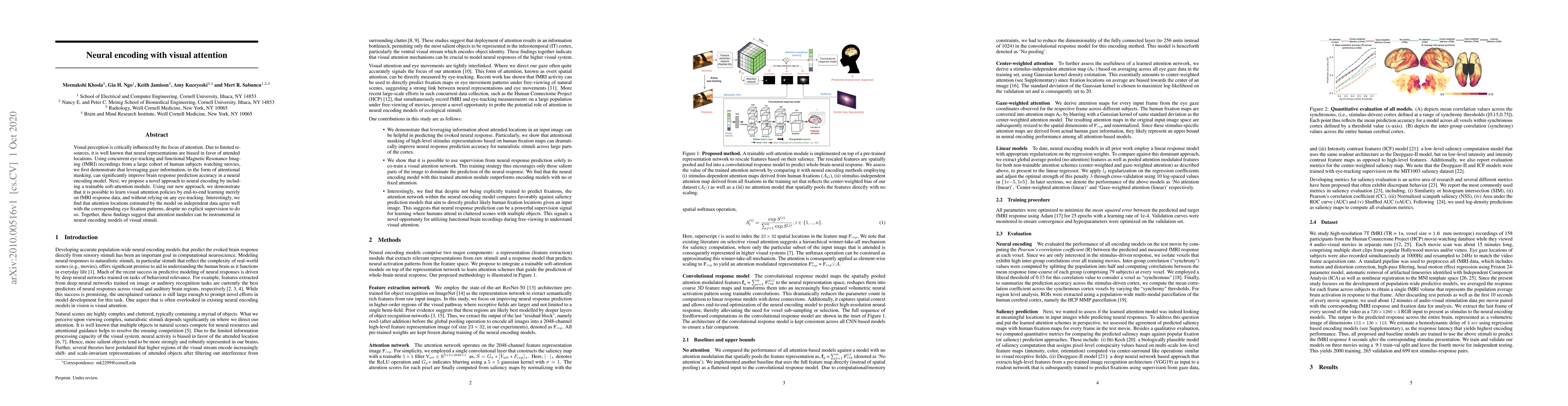 Researchers used eye-tracking and fMRI to show that attentional masking can improve brain response prediction accuracy in neural encoding models. They also demonstrated a new approach using a trainable soft-attention module that learns visual attention policies from fMRI data alone.