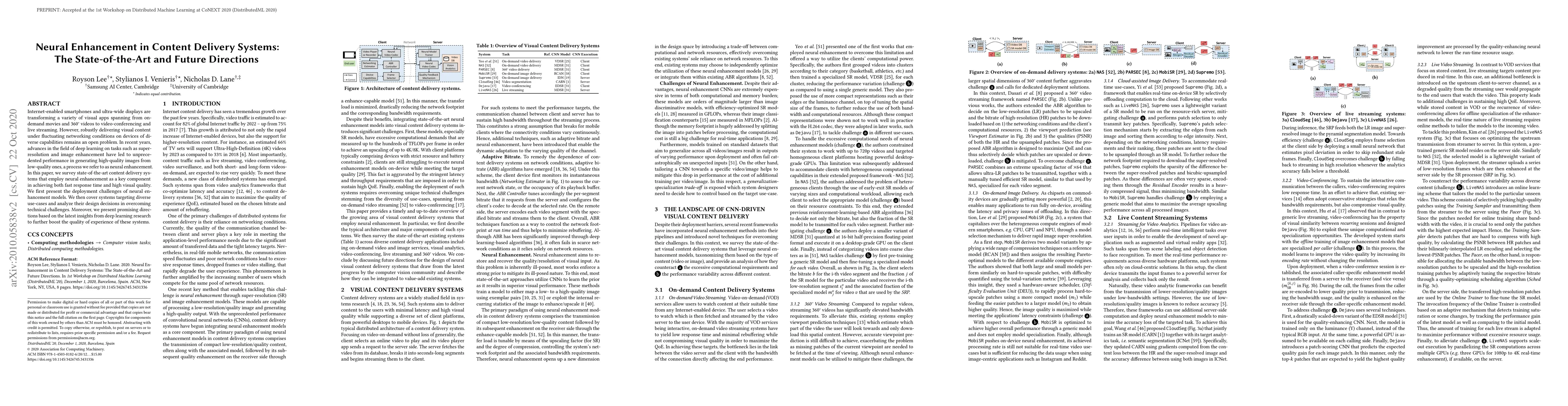 This paper surveys state-of-the-art content delivery systems that use neural enhancement to improve visual quality on devices with fluctuating networking conditions. It presents design decisions and promising directions for future improvements in these systems.