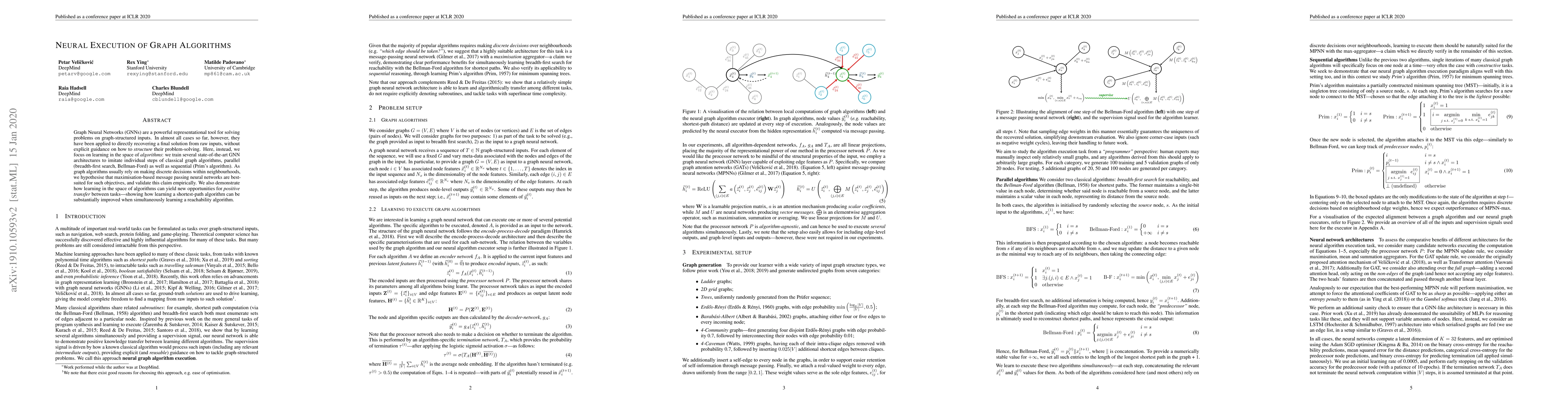 Researchers trained GNNs to imitate individual steps of classical graph algorithms, demonstrating the effectiveness of maximisation-based message passing neural networks in solving discrete decision problems. This approach also enables positive transfer between tasks, such as improving shortest-path learning with simultaneous reachability algorithm training.