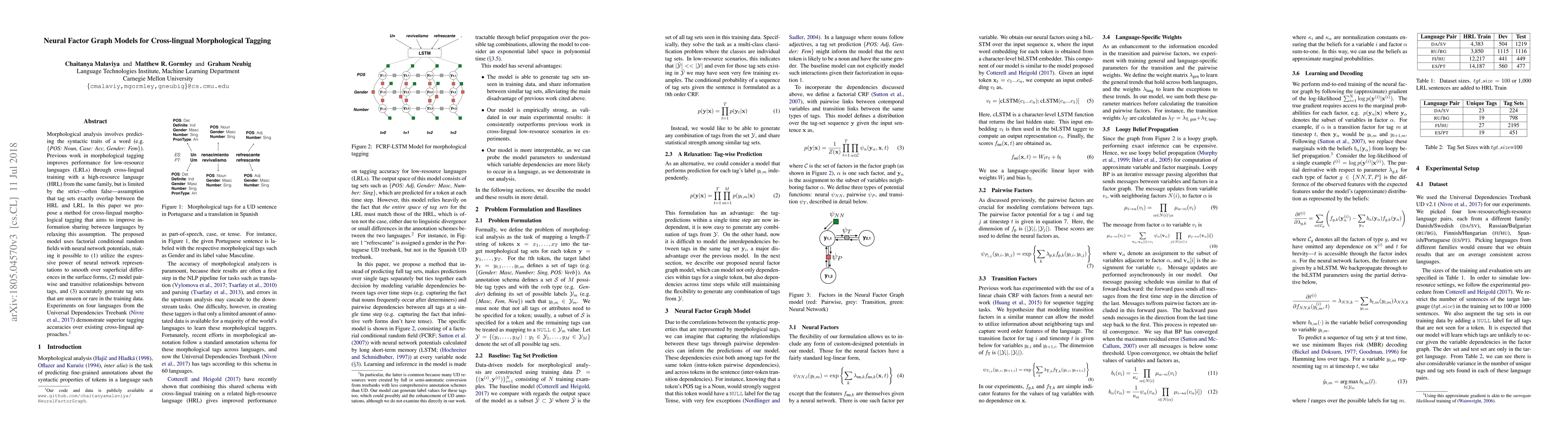 This paper proposes a neural factor graph model for cross-lingual morphological tagging that enhances information sharing between languages by relaxing the assumption of exact tag set overlap. The model uses neural network potentials to improve tagging accuracy for low-resource languages through high-resource language training.