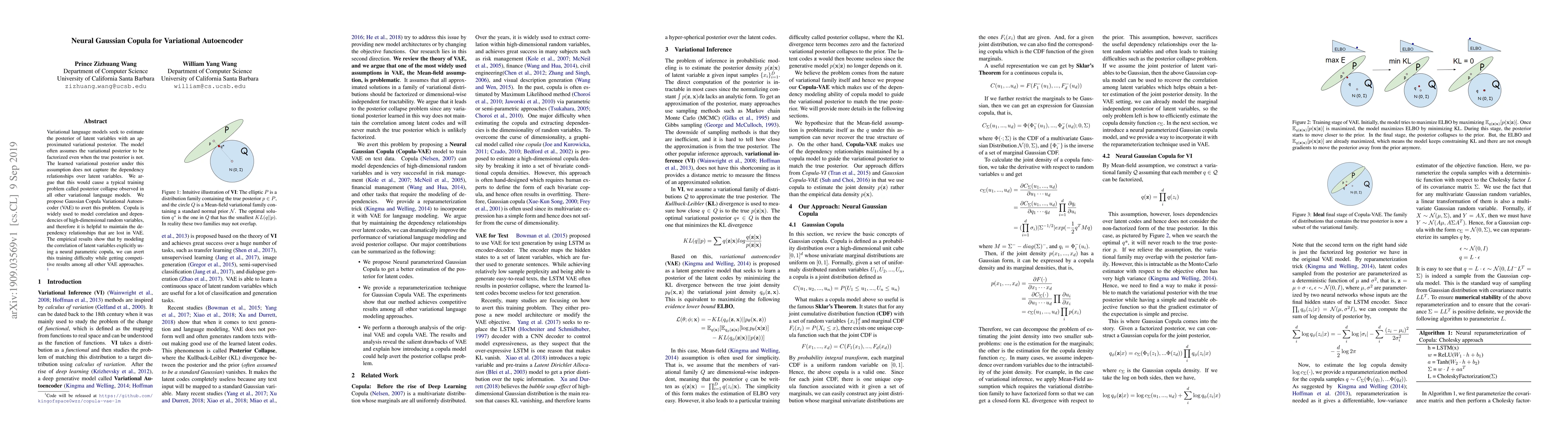 This paper proposes a Neural Gaussian Copula Variational Autoencoder to address the issue of posterior collapse in traditional VAEs by explicitly modeling the dependency relationships between latent variables using a neural parametric copula. Empirical results demonstrate improved training stability and competitive performance compared to other VAE methods.