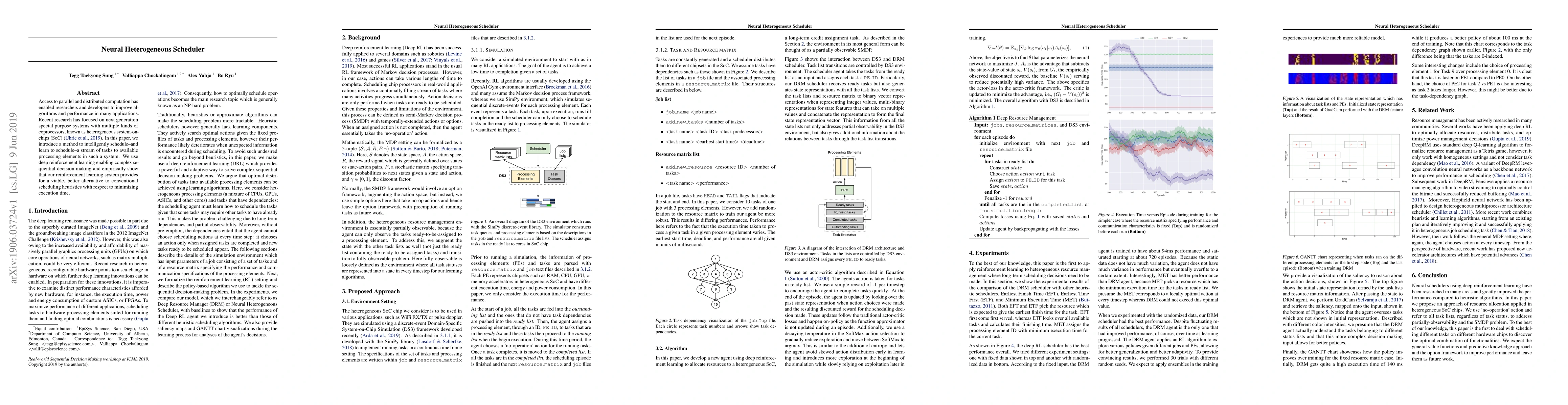 This paper introduces a method to schedule tasks on heterogeneous systems using deep reinforcement learning, providing a viable alternative to conventional scheduling heuristics with improved execution time.
