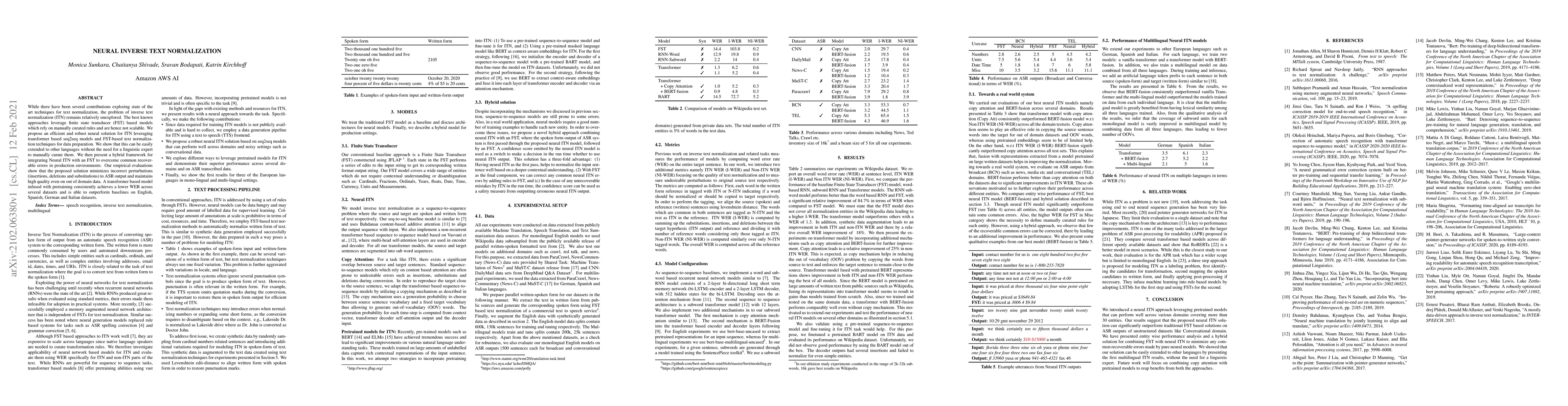 This paper proposes a neural solution for inverse text normalization using transformer-based seq2seq models, demonstrating scalability and effectiveness across multiple languages. It integrates a hybrid framework with FST for error minimization, achieving lower word error rates and high quality on diverse datasets.