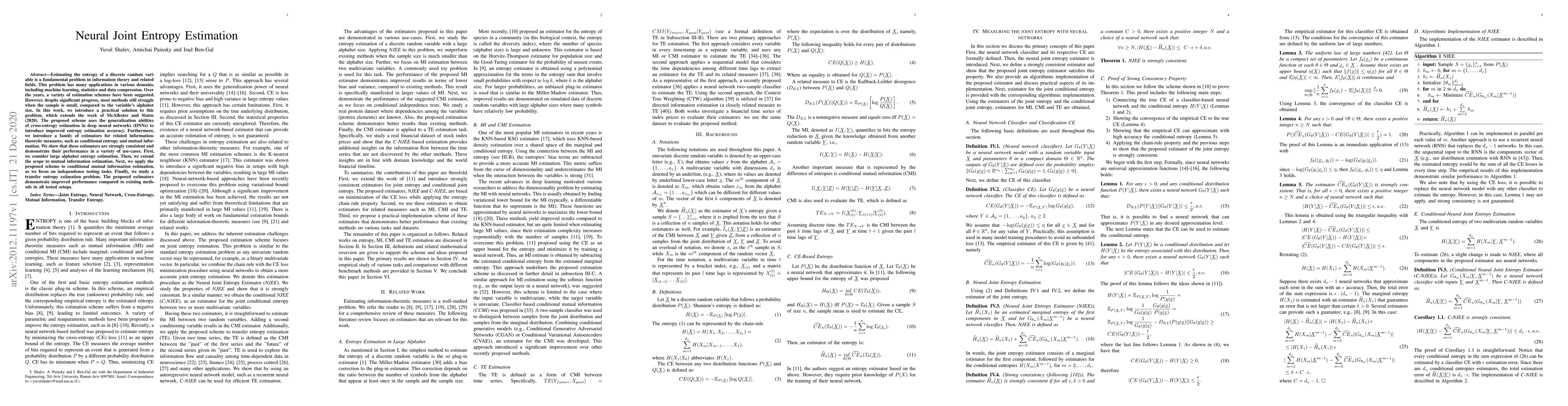 Estimating the entropy of a discrete random variable is a fundamental problem in information theory and related fields. This problem has many applications in various domains, including machine learning, statistics and data compression. Over the years, a variety of estimation schemes have been suggested. However, despite significant progress, most methods still struggle when the sample is small, compared to the variable's alphabet size. In this work, we introduce a practical solution to this problem, which extends the work of McAllester and Statos (2020). The proposed scheme uses the generalization abilities of cross-entropy estimation in deep neural networks (DNNs) to introduce improved entropy estimation accuracy. Furthermore, we introduce a family of estimators for related information-theoretic measures, such as conditional entropy and mutual information. We show that these estimators are strongly consistent and demonstrate their performance in a variety of use-cases. First, we consider large alphabet entropy estimation. Then, we extend the scope to mutual information estimation. Next, we apply the proposed scheme to conditional mutual information estimation, as we focus on independence testing tasks. Finally, we study a transfer entropy estimation problem. The proposed estimators demonstrate improved performance compared to existing methods in all tested setups.