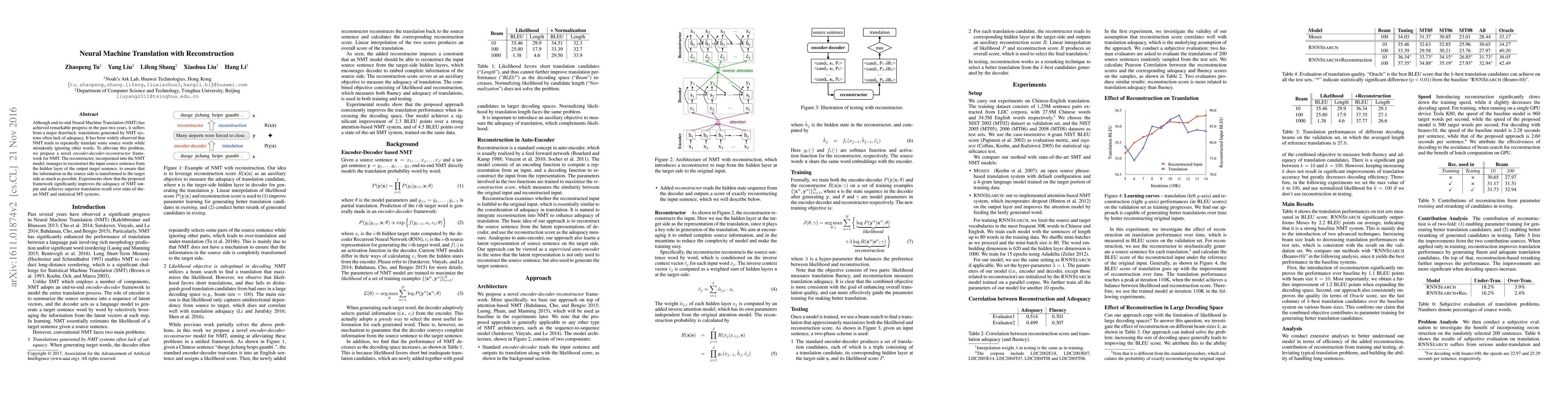 This paper proposes an encoder-decoder-reconstructor framework for Neural Machine Translation (NMT) to enhance translation adequacy by reconstructing the source sentence from the target sentence's hidden layer, ensuring comprehensive information transfer. Experimental results demonstrate significant improvements in translation adequacy and overall performance compared to state-of-the-art NMT and statistical MT systems.
