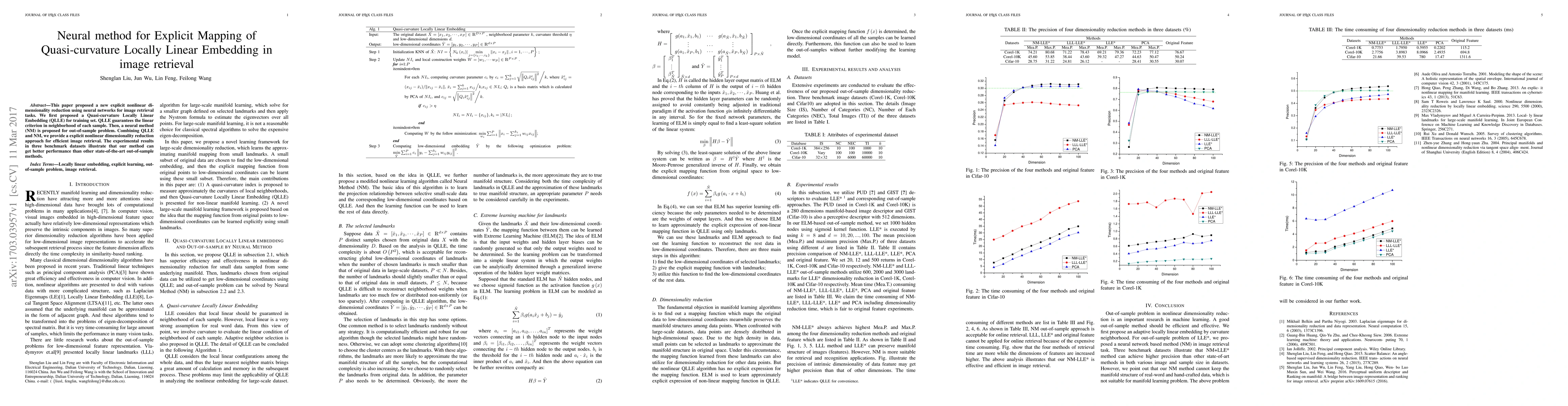 This paper proposed a new explicit nonlinear dimensionality reduction using neural networks for image retrieval tasks. We first proposed a Quasi-curvature Locally Linear Embedding (QLLE) for training set. QLLE guarantees the linear criterion in neighborhood of each sample. Then, a neural method (NM) is proposed for out-of-sample problem. Combining QLLE and NM, we provide a explicit nonlinear dimensionality reduction approach for efficient image retrieval. The experimental results in three benchmark datasets illustrate that our method can get better performance than other state-of-the-art out-of-sample methods.