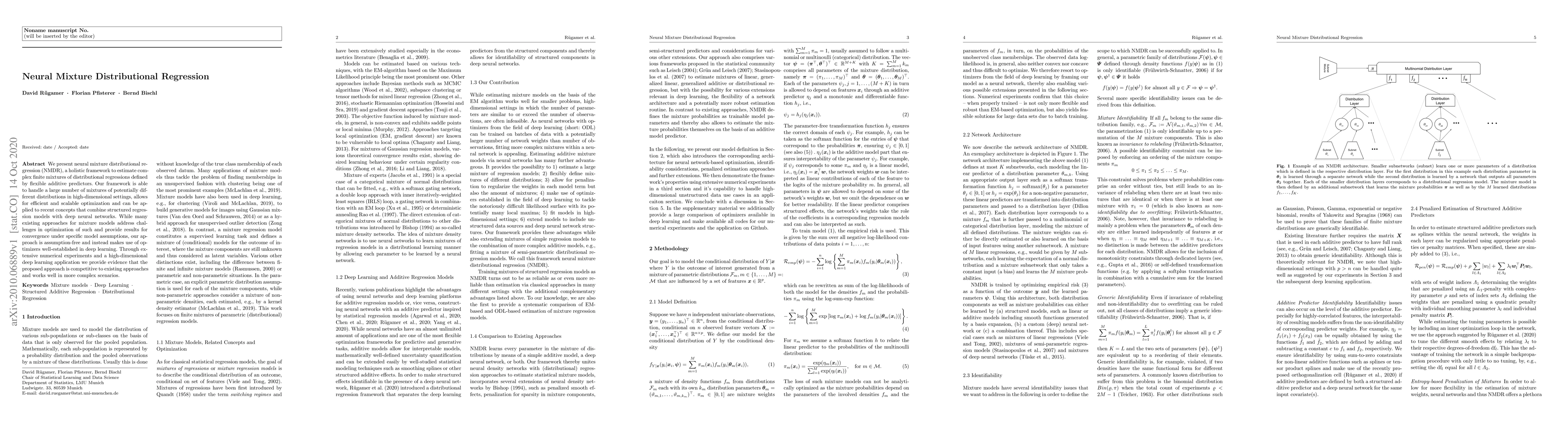 Neural Mixture Distributional Regression (NMDR) offers an assumption-free framework for estimating complex finite mixtures of distributional regressions using flexible additive predictors. It efficiently scales to high-dimensional settings and demonstrates competitive performance in numerical experiments and deep learning applications.