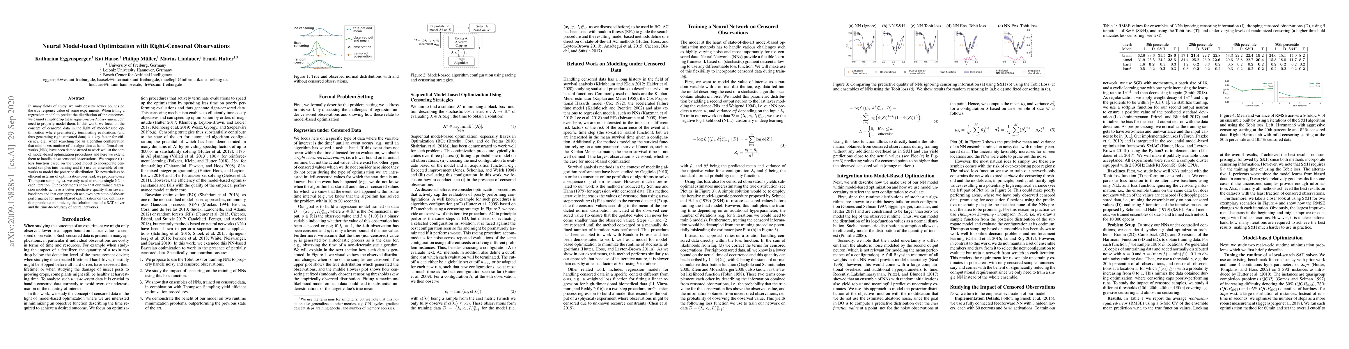 A new approach to model-based optimization incorporates censored data into neural network training using a Tobit loss function and Thompson sampling, achieving better predictive quality than baselines in SAT solver and neural network optimization tasks.