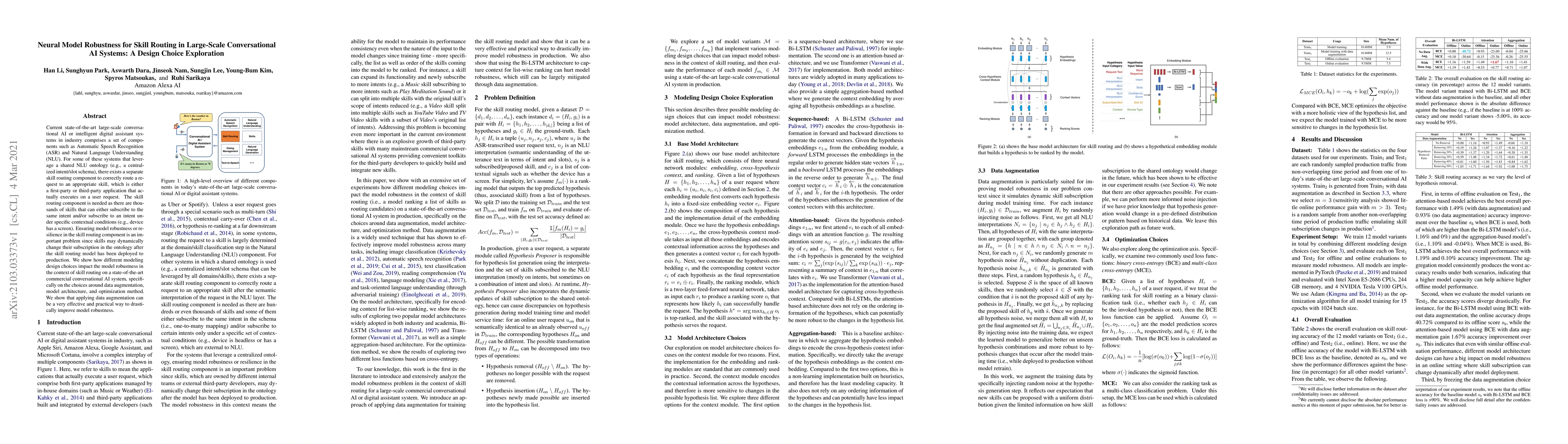 This paper explores design choices for enhancing the robustness of skill routing in large-scale conversational AI systems, focusing on data augmentation, model architecture, and optimization methods. It demonstrates that data augmentation significantly improves model robustness amidst dynamic skill changes.