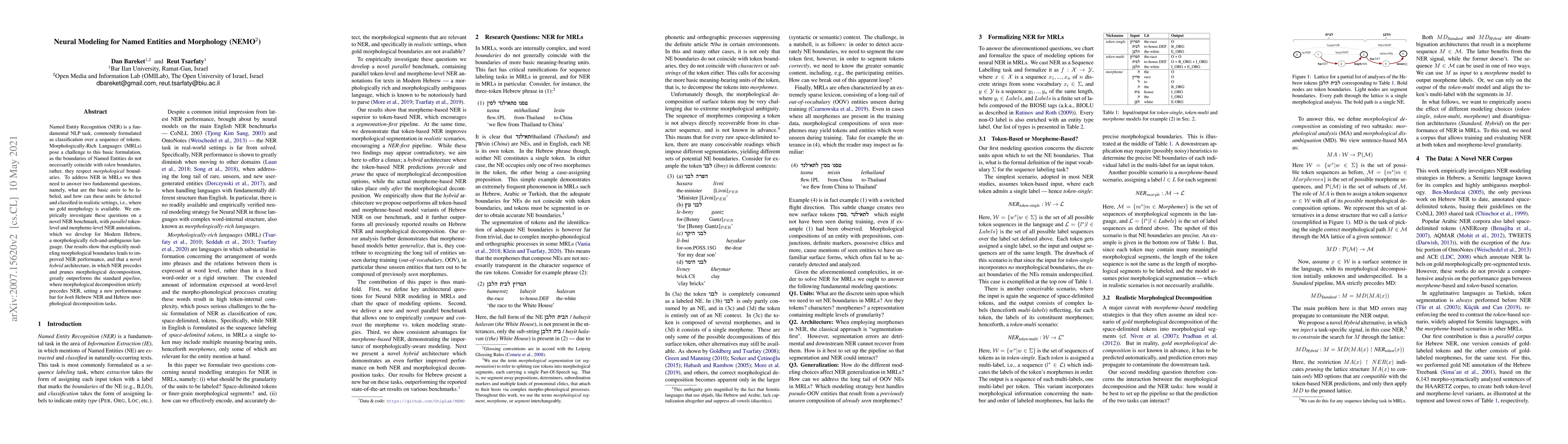 A new approach to Named Entity Recognition (NER) in morphologically-rich languages improves performance by explicitly modeling morphological boundaries and integrating NER with morphological decomposition.