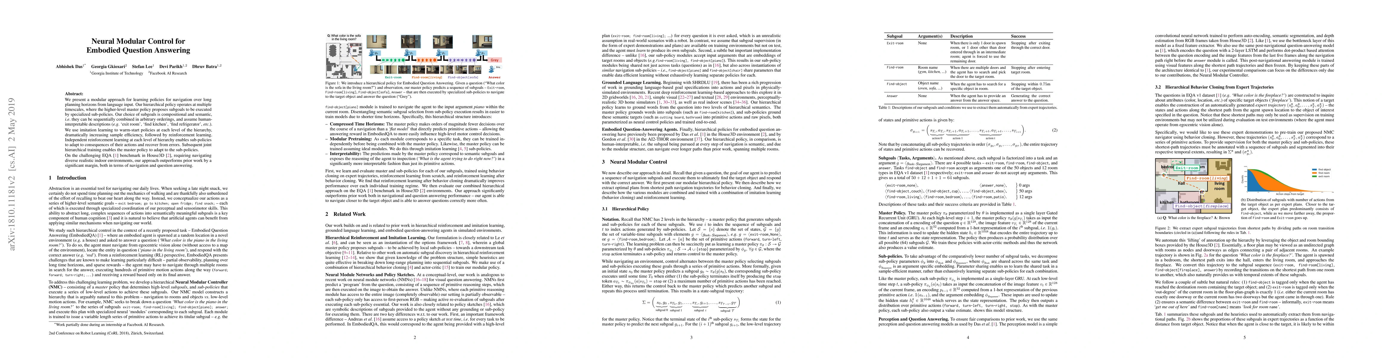 Researchers developed a modular approach for learning policies in embodied question answering, outperforming prior work on navigation and question answering tasks with realistic indoor environments.