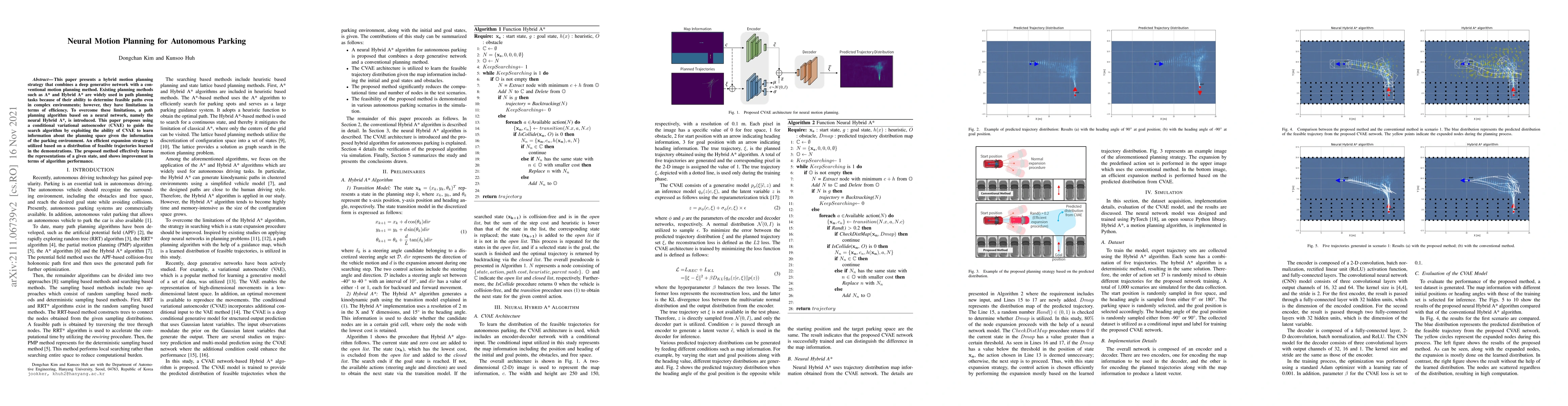 This paper presents a hybrid motion planning strategy that combines a deep generative network with a conventional motion planning method. Existing planning methods such as A* and Hybrid A* are widely used in path planning tasks because of their ability to determine feasible paths even in complex environments; however, they have limitations in terms of efficiency. To overcome these limitations, a path planning algorithm based on a neural network, namely the neural Hybrid A*, is introduced. This paper proposes using a conditional variational autoencoder (CVAE) to guide the search algorithm by exploiting the ability of CVAE to learn information about the planning space given the information of the parking environment. A non-uniform expansion strategy is utilized based on a distribution of feasible trajectories learned in the demonstrations. The proposed method effectively learns the representations of a given state, and shows improvement in terms of algorithm performance.