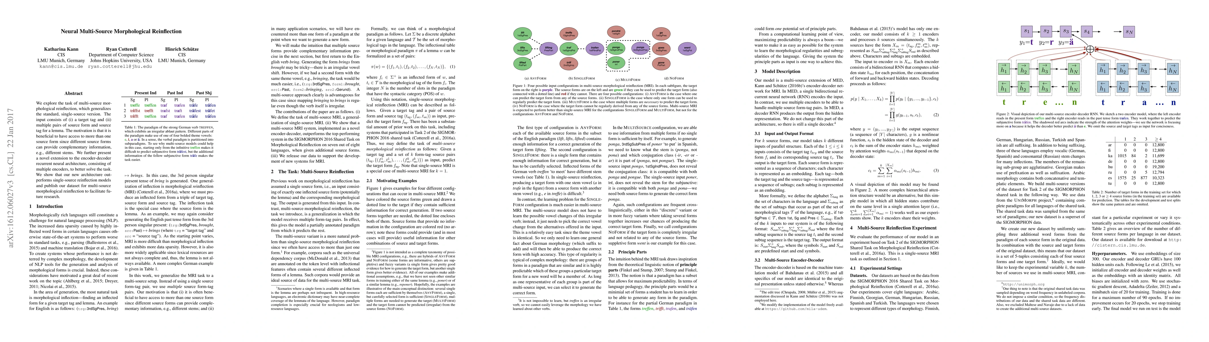 This paper investigates multi-source morphological reinflection, extending beyond single-source models by leveraging multiple source forms for a lemma to provide complementary information. It introduces a novel neural architecture with multiple encoders, demonstrating superior performance over single-source models and releasing a new dataset for further research.