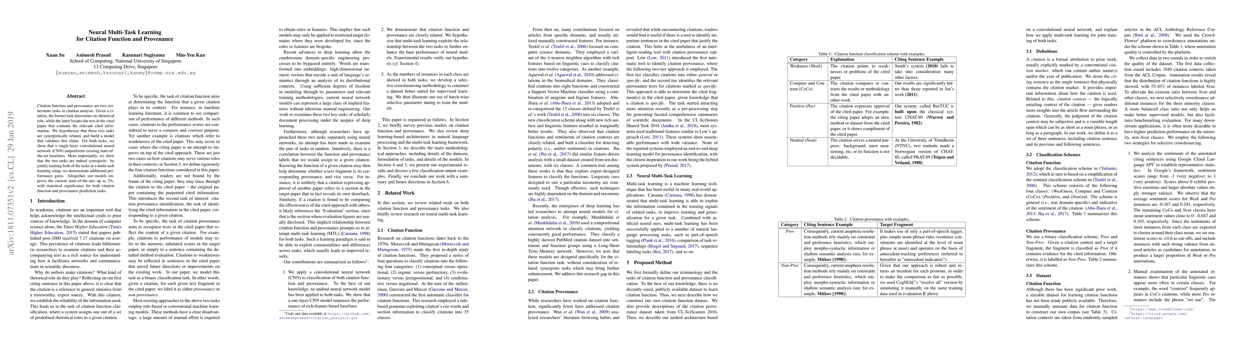 Citation function and provenance are two cornerstone tasks in citation analysis. Given a citation, the former task determines its rhetorical role, while the latter locates the text in the cited paper that contains the relevant cited information. We hypothesize that these two tasks are synergistically related, and build a model that validates this claim. For both tasks, we show that a single-layer convolutional neural network (CNN) outperforms existing state-of-the-art baselines. More importantly, we show that the two tasks are indeed synergistic: by jointly training both of the tasks in a multi-task learning setup, we demonstrate additional performance gains. Altogether, our models improve the current state-of-the-arts up to 2\%, with statistical significance for both citation function and provenance prediction tasks.