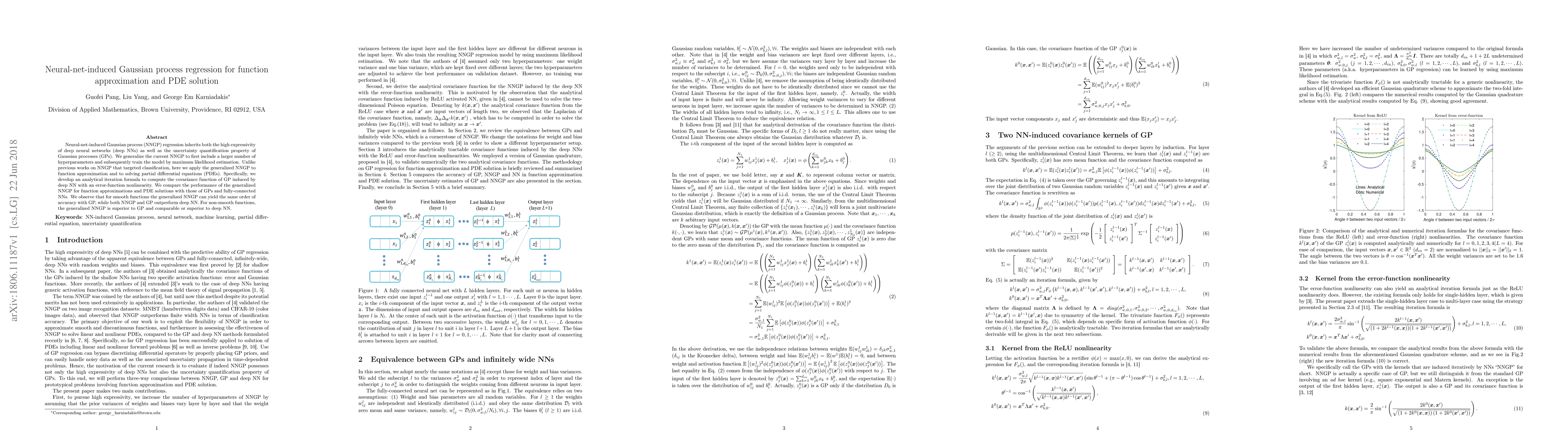 This paper proposes a generalized neural-net-induced Gaussian process (NNGP) regression model that combines the strengths of deep neural networks and Gaussian processes for function approximation and PDE solutions. The model outperforms traditional Gaussian processes and deep neural networks in both smooth and non-smooth function scenarios.