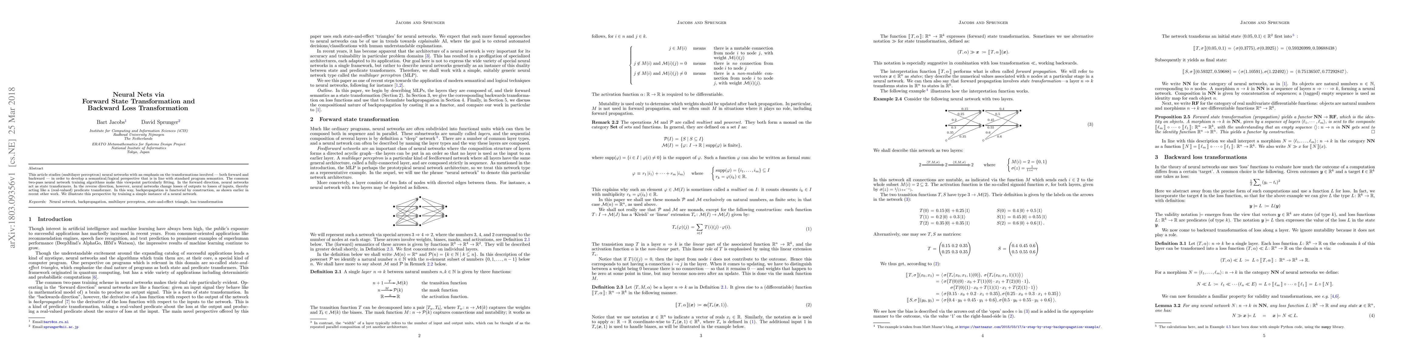 This paper explores neural networks through the lens of forward state transformations and backward loss transformations, presenting them as state transformers and predicate transformers, respectively. It demonstrates how backpropagation is inherently functorial, aligning with standard program semantics.