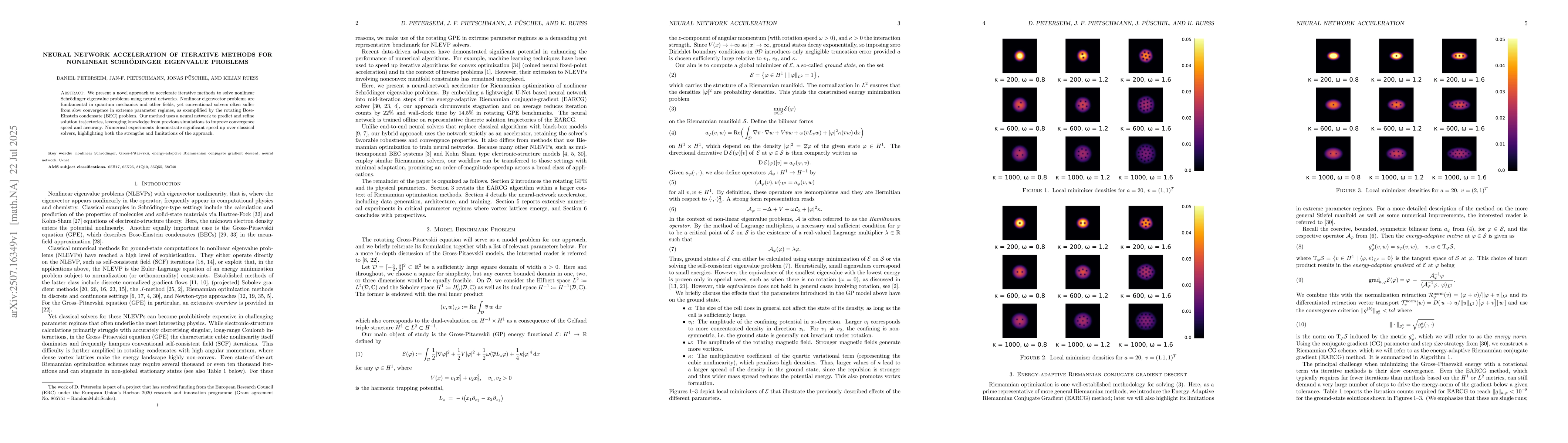 We present a novel approach to accelerate iterative methods to solve nonlinear Schr\"odinger eigenvalue problems using neural networks. Nonlinear eigenvector problems are fundamental in quantum mechanics and other fields, yet conventional solvers often suffer from slow convergence in extreme parameter regimes, as exemplified by the rotating Bose- Einstein condensate (BEC) problem. Our method uses a neural network to predict and refine solution trajectories, leveraging knowledge from previous simulations to improve convergence speed and accuracy. Numerical experiments demonstrate significant speed-up over classical solvers, highlighting both the strengths and limitations of the approach.