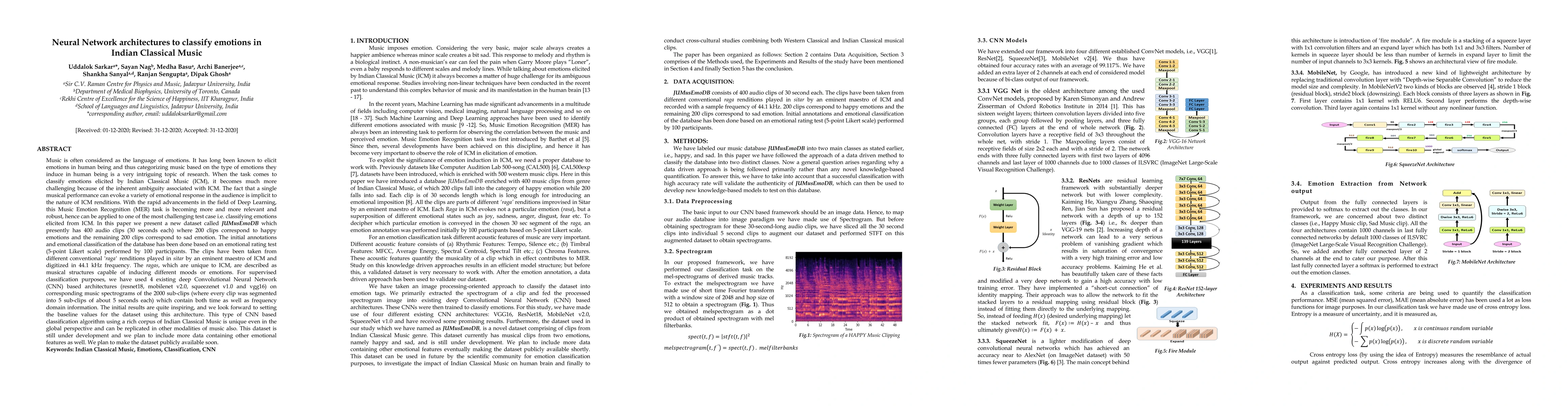 This paper introduces a new dataset, JUMusEmoDB, for classifying emotions in Indian Classical Music using deep learning. It employs four CNN architectures to classify 400 audio clips into happy and sad emotions, showing promising initial results and plans for further dataset expansion.