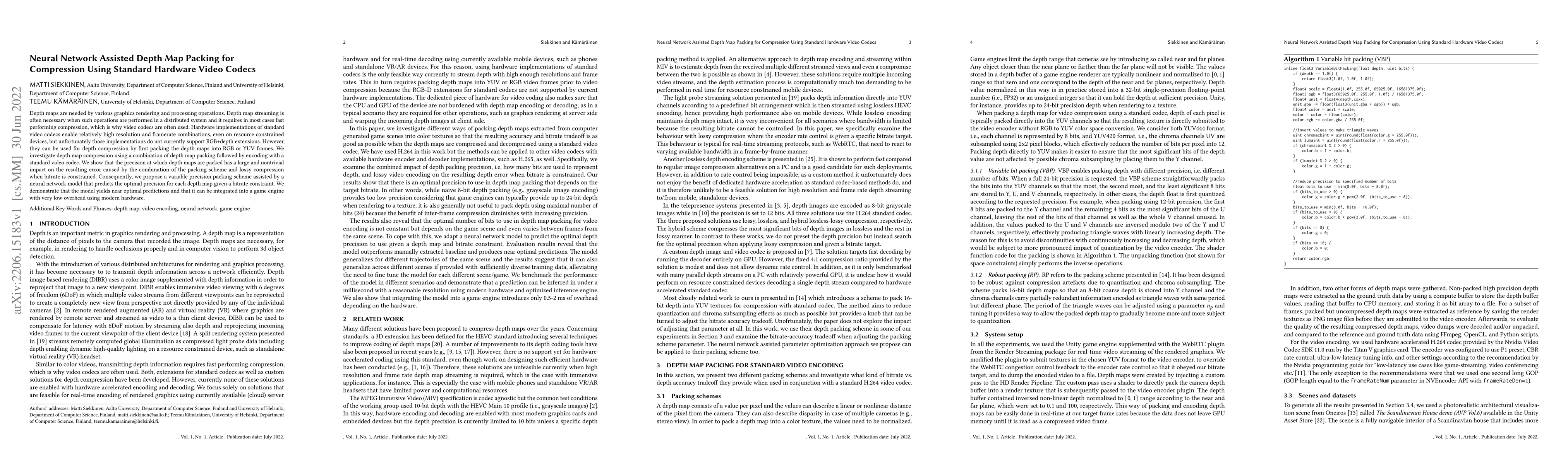 This paper proposes a neural network-assisted method for compressing depth maps using standard video codecs by packing them into RGB or YUV frames. The study finds that variable precision packing significantly impacts compression error and introduces a neural network model to predict optimal precision for each depth map under bitrate constraints, achieving near-optimal results with minimal overhead.