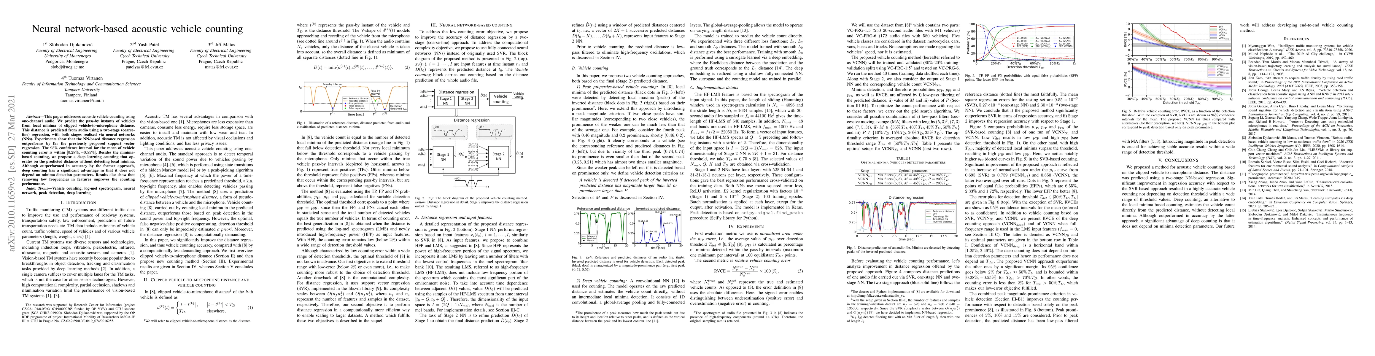 Researchers developed a neural network-based system for counting vehicles from one-channel audio, outperforming previous methods with high accuracy and robustness. The system uses a two-stage regression approach to predict vehicle pass-by instants and can be applied in various scenarios without requiring specific detection parameters.