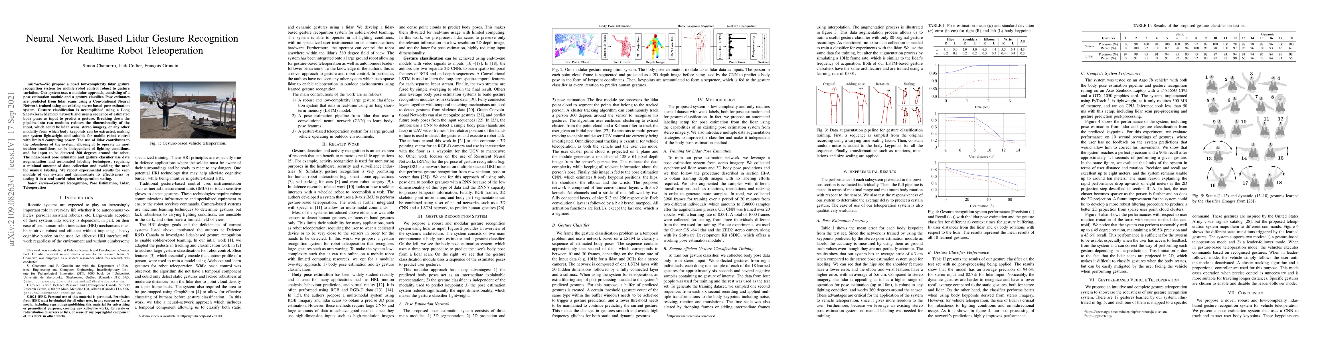 This paper proposes a low-complexity lidar gesture recognition system for mobile robot teleoperation using a modular approach with a CNN-based pose estimator and an LSTM-based gesture classifier. The system is robust, lightweight, and operates effectively in various outdoor conditions with minimal data collection.