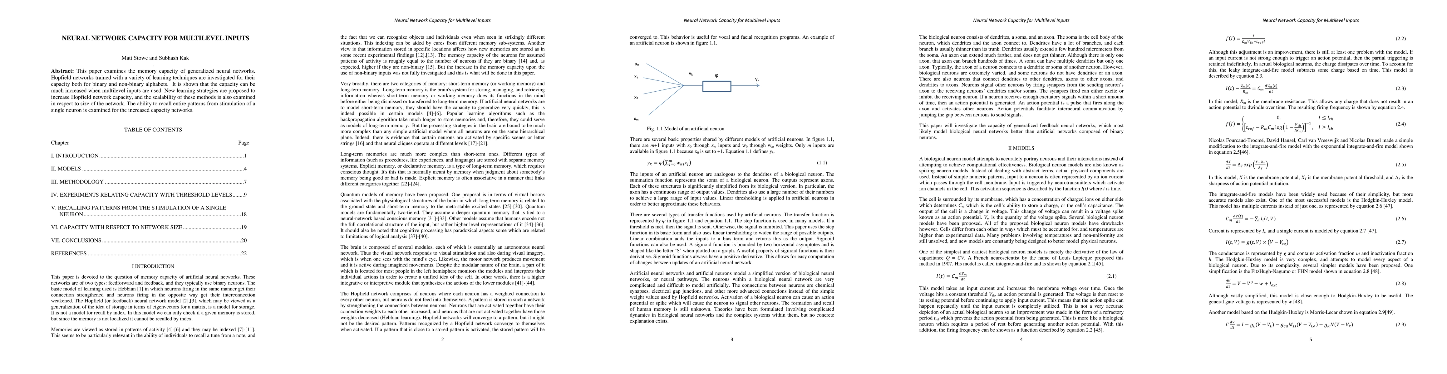 This paper investigates the memory capacity of generalized neural networks, particularly Hopfield networks, and demonstrates that using multilevel inputs significantly enhances capacity. New learning strategies are proposed to boost network scalability and pattern recall from single neuron stimulation.
