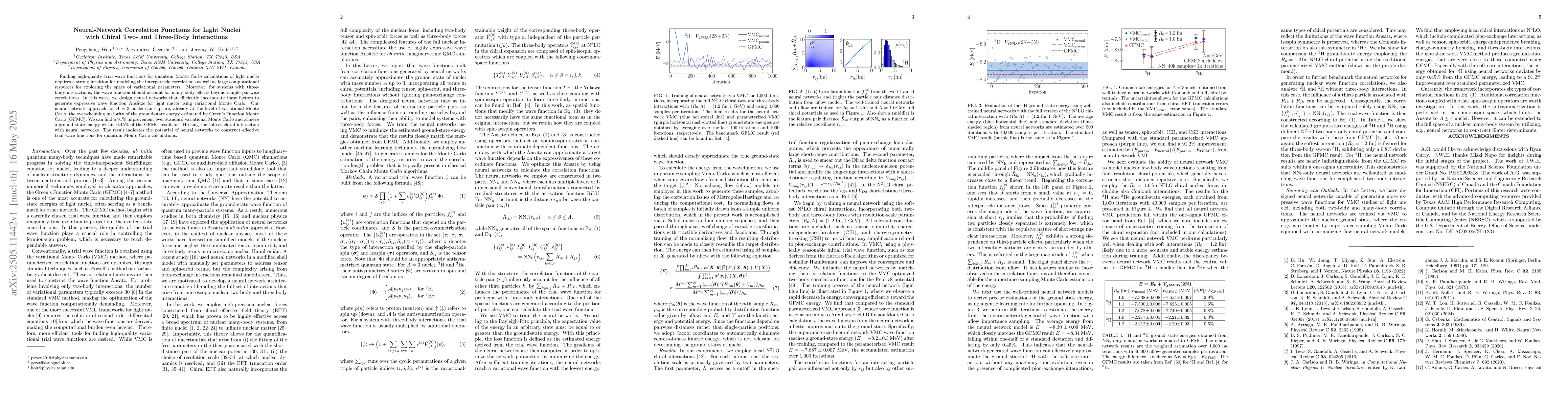 Researchers developed neural networks to create more accurate trial wave functions for quantum Monte Carlo calculations of light nuclei, achieving 91% improvement over standard methods.