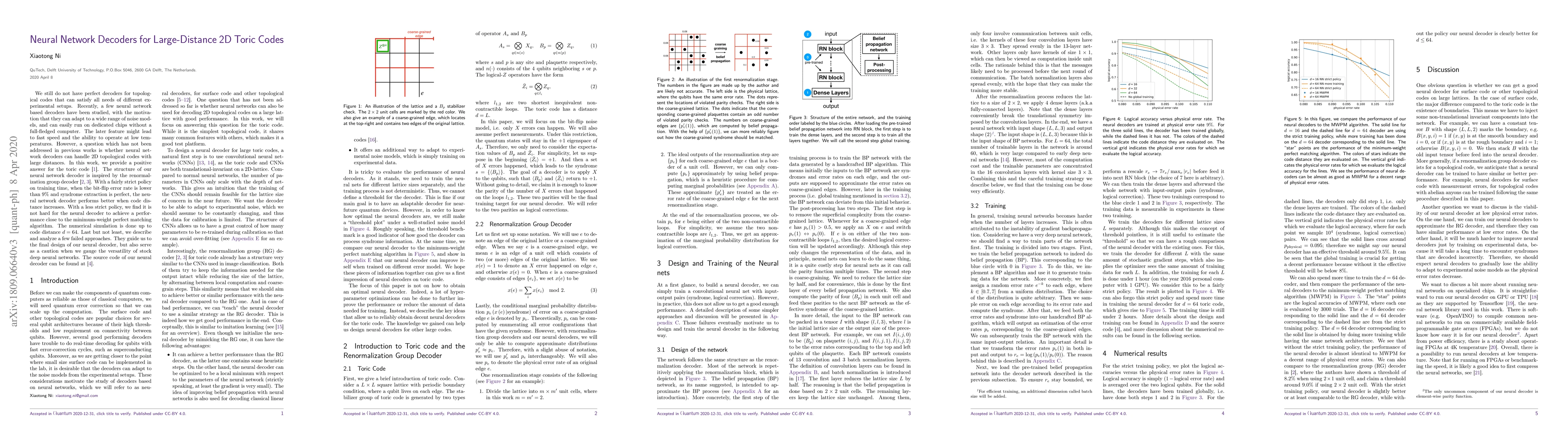 This paper investigates neural network decoders for large-distance 2D toric codes, demonstrating their effectiveness compared to traditional methods. The proposed neural decoder, inspired by the renormalization group decoder, outperforms conventional methods as code distance increases, especially under strict training conditions.