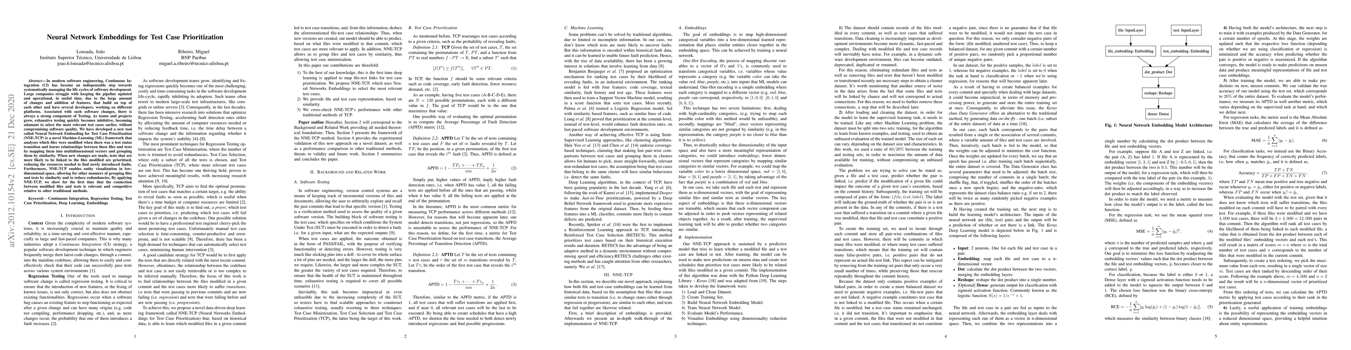In modern software engineering, Continuous Integration (CI) has become an indispensable step towards systematically managing the life cycles of software development. Large companies struggle with keeping the pipeline updated and operational, in useful time, due to the large amount of changes and addition of features, that build on top of each other and have several developers, working on different platforms. Associated with such software changes, there is always a strong component of Testing. As teams and projects grow, exhaustive testing quickly becomes inhibitive, becoming adamant to select the most relevant test cases earlier, without compromising software quality. We have developed a new tool called Neural Network Embeeding for Test Case Prioritization (NNE-TCP) is a novel Machine-Learning (ML) framework that analyses which files were modified when there was a test status transition and learns relationships between these files and tests by mapping them into multidimensional vectors and grouping them by similarity. When new changes are made, tests that are more likely to be linked to the files modified are prioritized, reducing the resources needed to find newly introduced faults. Furthermore, NNE-TCP enables entity visualization in low-dimensional space, allowing for other manners of grouping files and tests by similarity and to reduce redundancies. By applying NNE-TCP, we show for the first time that the connection between modified files and tests is relevant and competitive relative to other traditional methods.