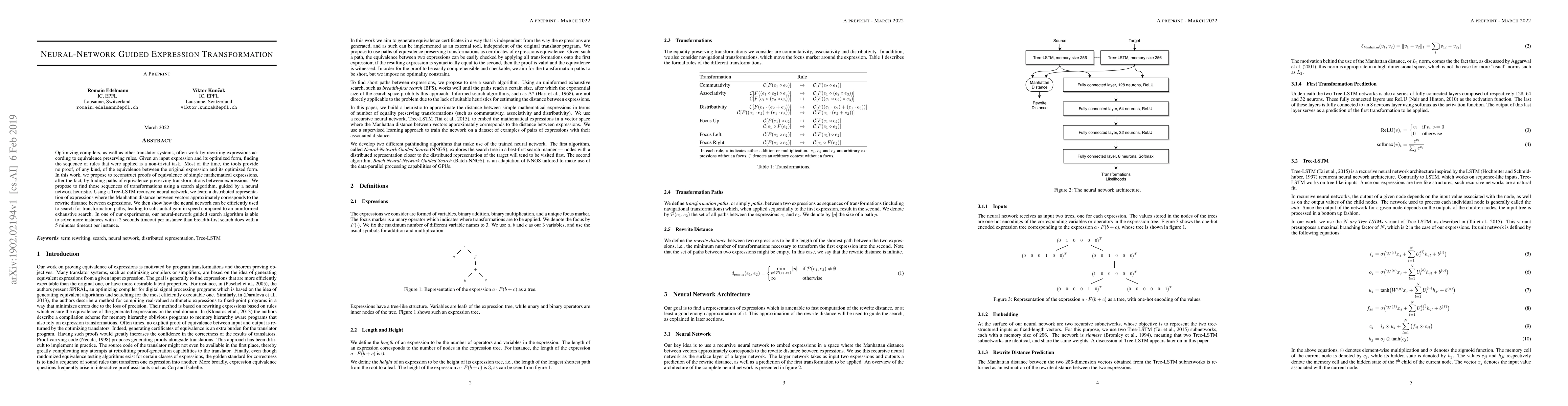 This research paper proposes a neural-network guided approach to reconstructing equivalence proofs for compiler transformations, achieving significant speed gains over exhaustive search methods.