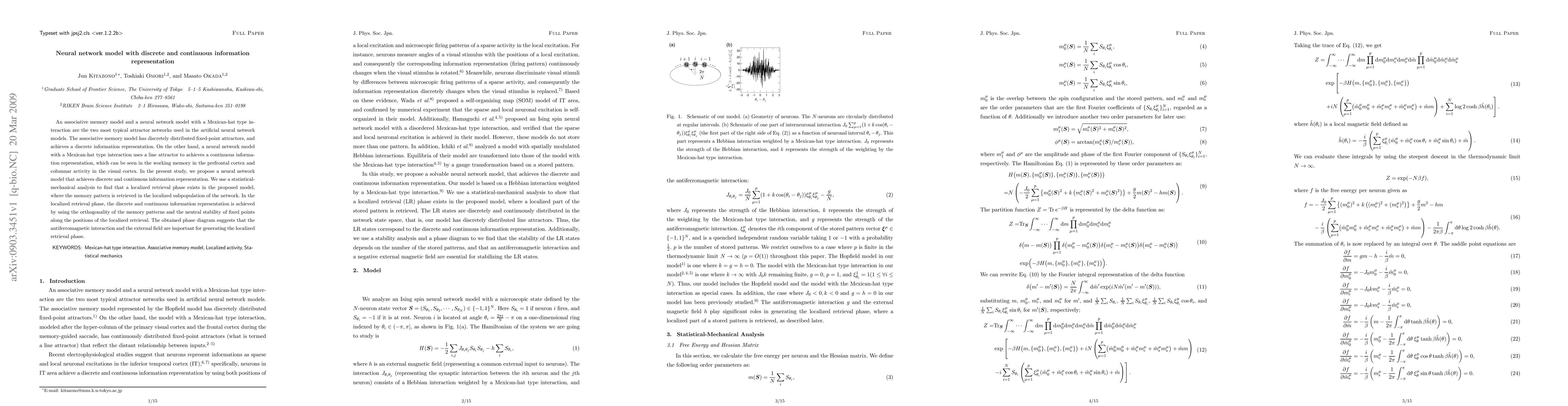 This paper proposes a neural network model that can represent both discrete and continuous information. It achieves this through a localized retrieval phase, facilitated by orthogonal memory patterns and neutral stability, suggesting the importance of antiferromagnetic interactions and external fields.