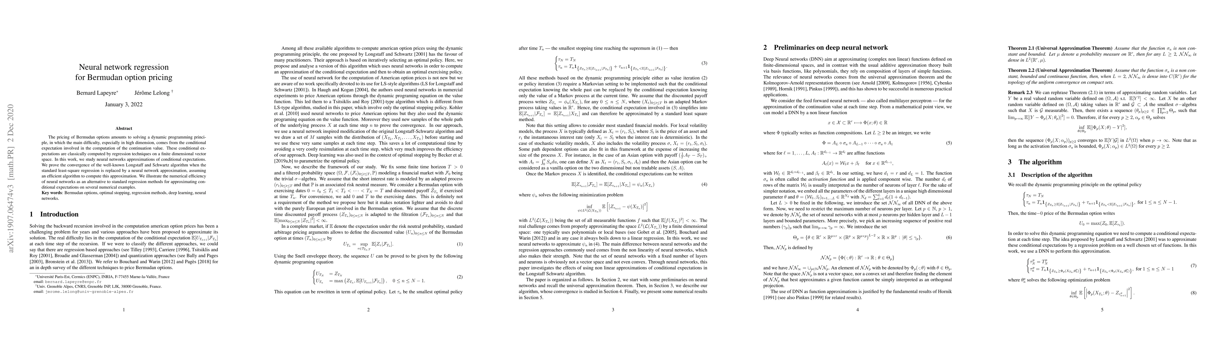 This paper explores neural network regression for pricing Bermudan options, proving the convergence of the Longstaff and Schwartz algorithm when using neural networks instead of traditional least-square regression, and demonstrating the numerical efficiency of this approach through various examples.