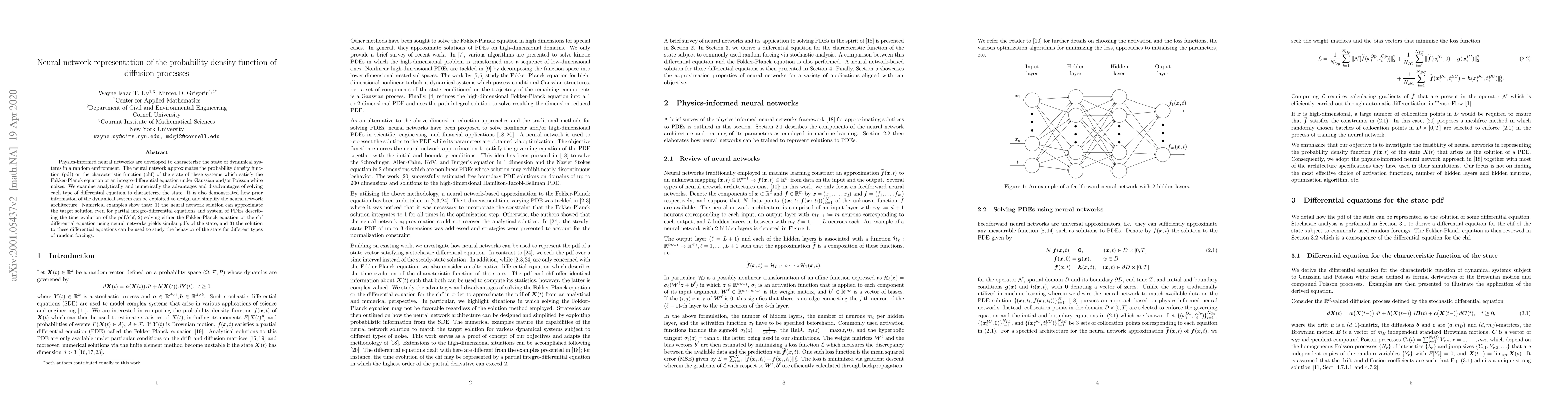 This paper introduces a new approach using neural networks to model probability density functions of dynamical systems in noisy environments, showing that both Fokker-Planck and characteristic function equations can be effectively solved with similar results.
