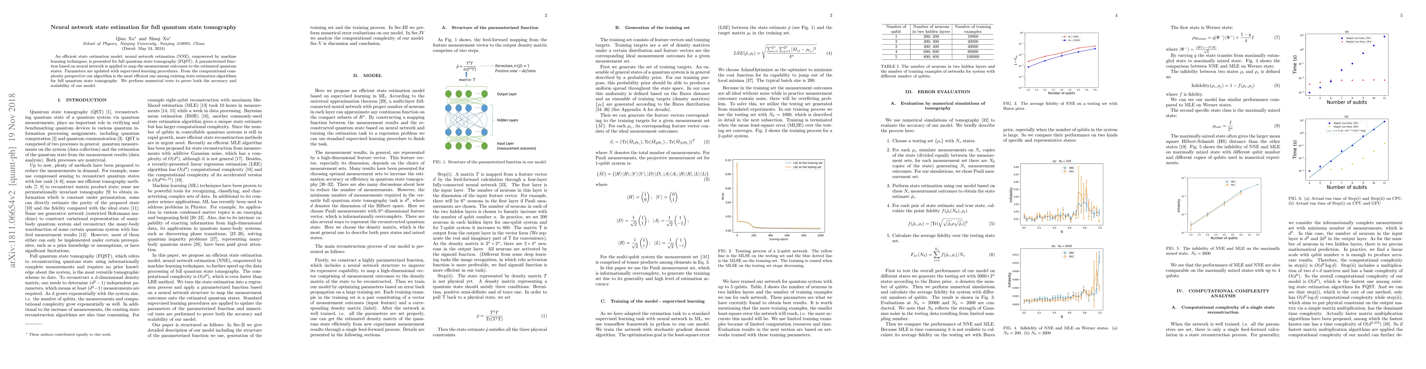 This paper presents a neural network estimation (NNE) model for efficient full quantum state tomography, leveraging machine learning to map measurement outcomes to quantum states. The proposed algorithm is computationally the most efficient among existing methods, demonstrated through numerical tests showing high accuracy and scalability.