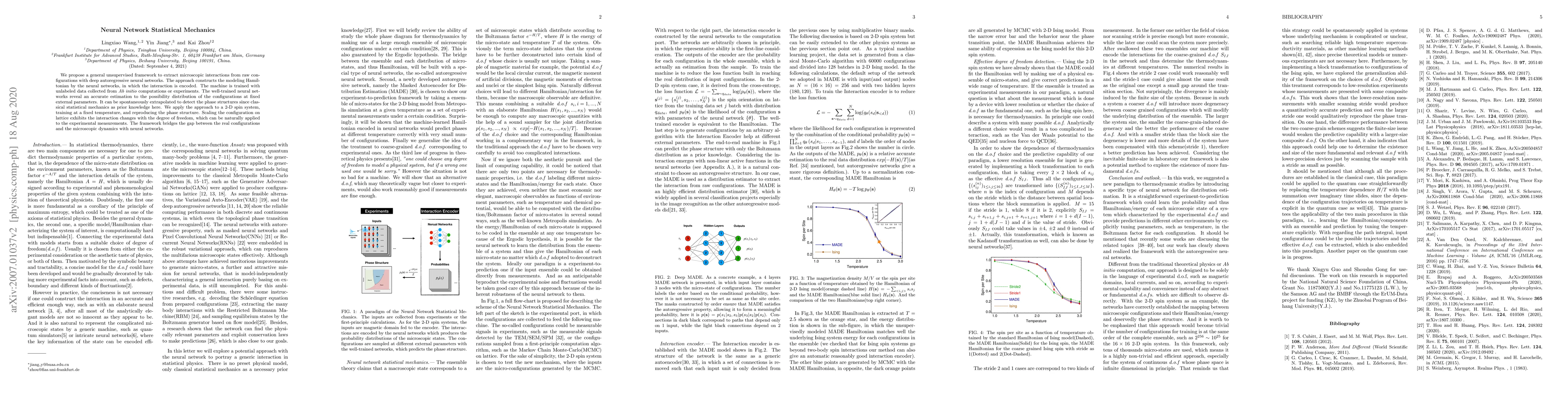 This paper introduces a neural network framework to derive microscopic interactions from raw configurations, replacing traditional Hamiltonian models. Trained on data from ab initio computations or experiments, the neural networks accurately estimate configuration probability distributions and can detect phase structures, demonstrating its application through a 2D spin system.