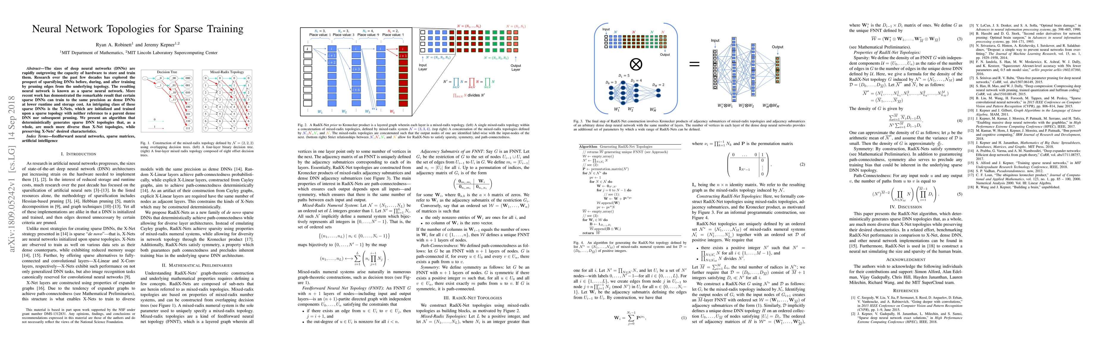 The sizes of deep neural networks (DNNs) are rapidly outgrowing the capacity of hardware to store and train them. Research over the past few decades has explored the prospect of sparsifying DNNs before, during, and after training by pruning edges from the underlying topology. The resulting neural network is known as a sparse neural network. More recent work has demonstrated the remarkable result that certain sparse DNNs can train to the same precision as dense DNNs at lower runtime and storage cost. An intriguing class of these sparse DNNs is the X-Nets, which are initialized and trained upon a sparse topology with neither reference to a parent dense DNN nor subsequent pruning. We present an algorithm that deterministically generates sparse DNN topologies that, as a whole, are much more diverse than X-Net topologies, while preserving X-Nets' desired characteristics.