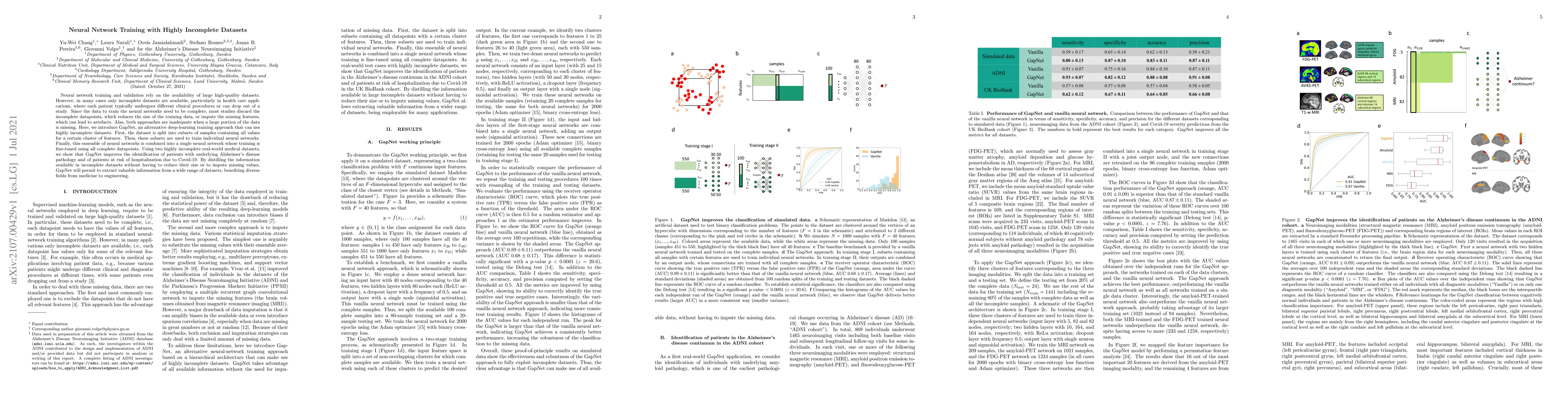 GapNet is a novel deep-learning approach designed to train neural networks using highly incomplete datasets, particularly in healthcare. It trains individual neural networks on subsets of complete data, then combines them into a fine-tuned ensemble, demonstrating improved accuracy in identifying patients with Alzheimer's and those at risk of Covid-19 hospitalization.