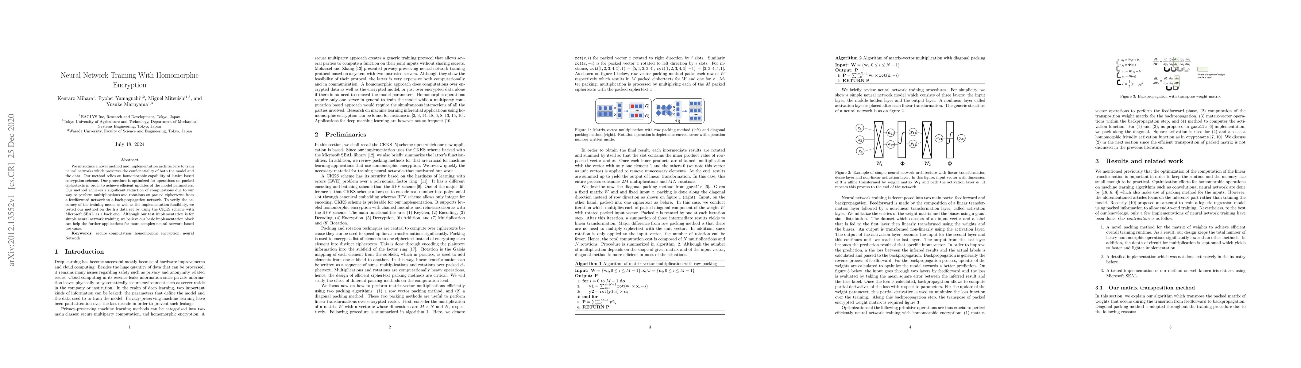 The paper presents a novel matrix transposition method for packed weights, significantly reducing the number of homomorphic operations and circuit depth, thereby enabling more efficient neural network training under homomorphic encryption.