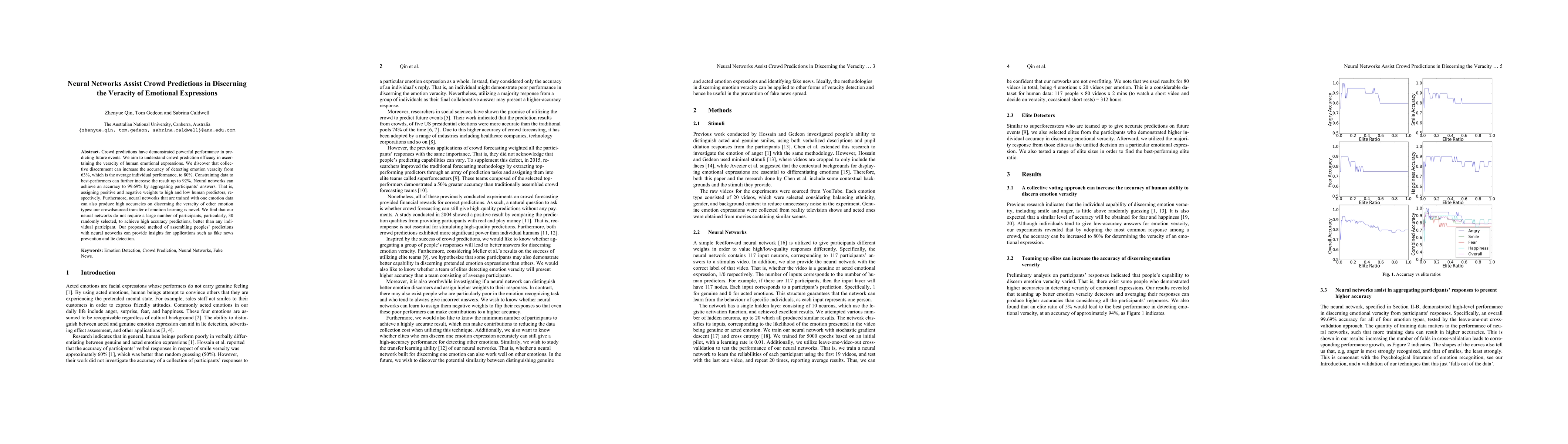 Neural networks improve emotion veracity detection accuracy from 63% to 99.69% by aggregating individual predictions. This method also enables transferring learning across emotions.