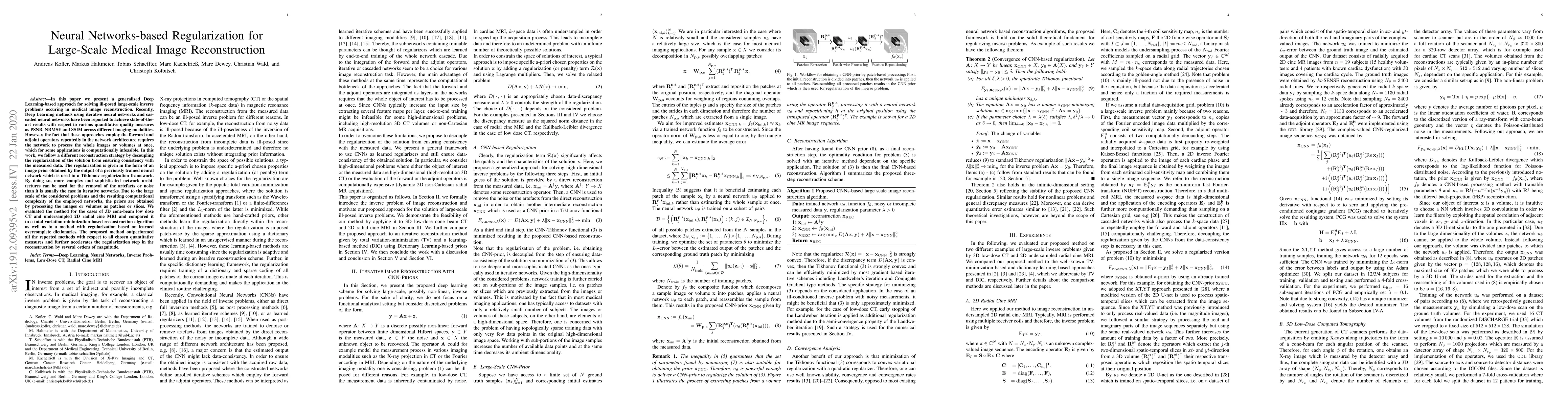 This paper proposes a novel Deep Learning-based regularization method for large-scale medical image reconstruction, decoupling regularization from data consistency to handle computational constraints. The method uses neural network-derived priors in a Tikhonov framework, outperforming other techniques in quantitative measures and significantly accelerating the regularization process.