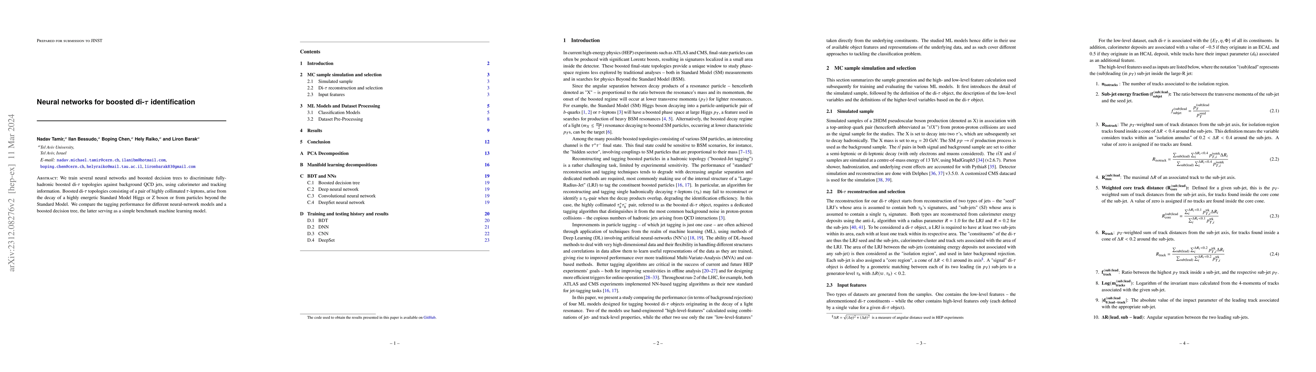 The research employed a combination of machine learning algorithms and particle physics techniques to identify di-tau jets in high-energy collisions.