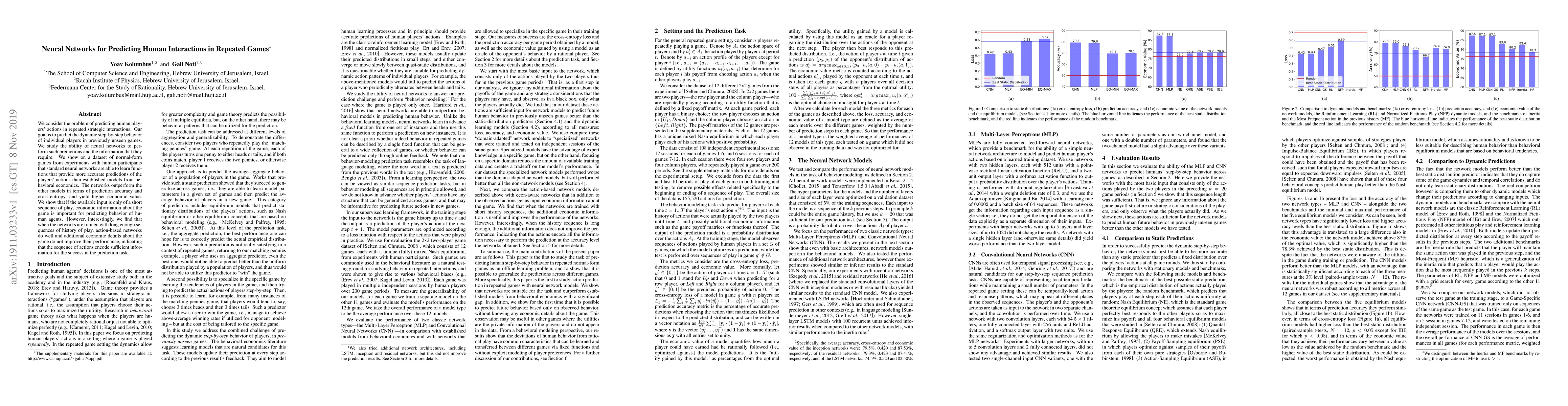 Researchers found that neural networks can accurately predict human behavior in repeated games, outperforming established models from behavioral economics. The networks require minimal additional information when trained on long sequences of play.