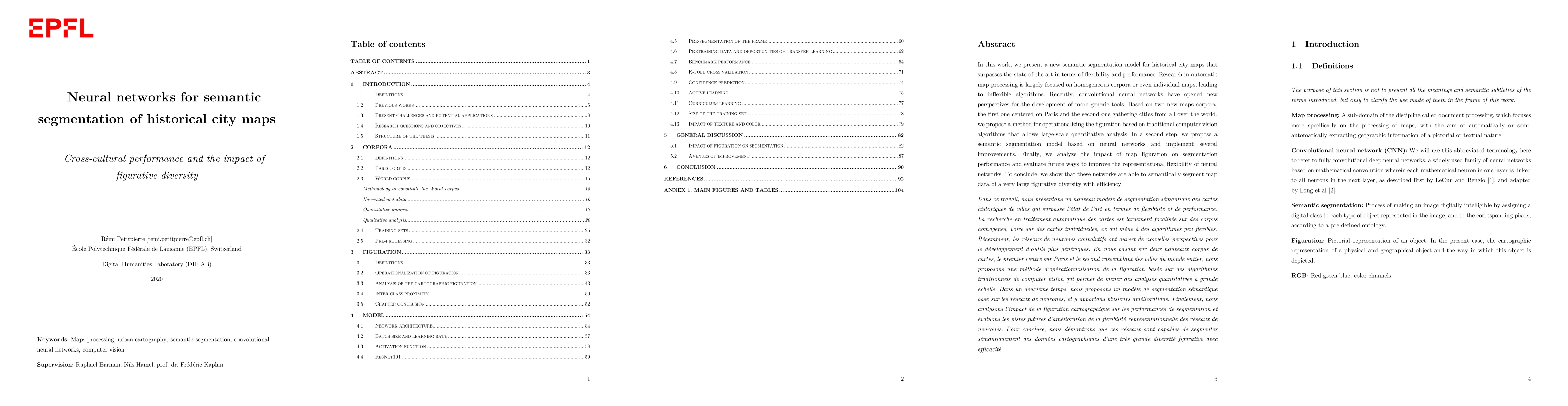 This paper introduces a neural network model for semantic segmentation of historical city maps, achieving superior performance and flexibility. The study evaluates the model's cross-cultural performance across diverse figurative representations, highlighting its potential to handle large-scale quantitative analysis and suggesting avenues for enhancing neural network representational flexibility.