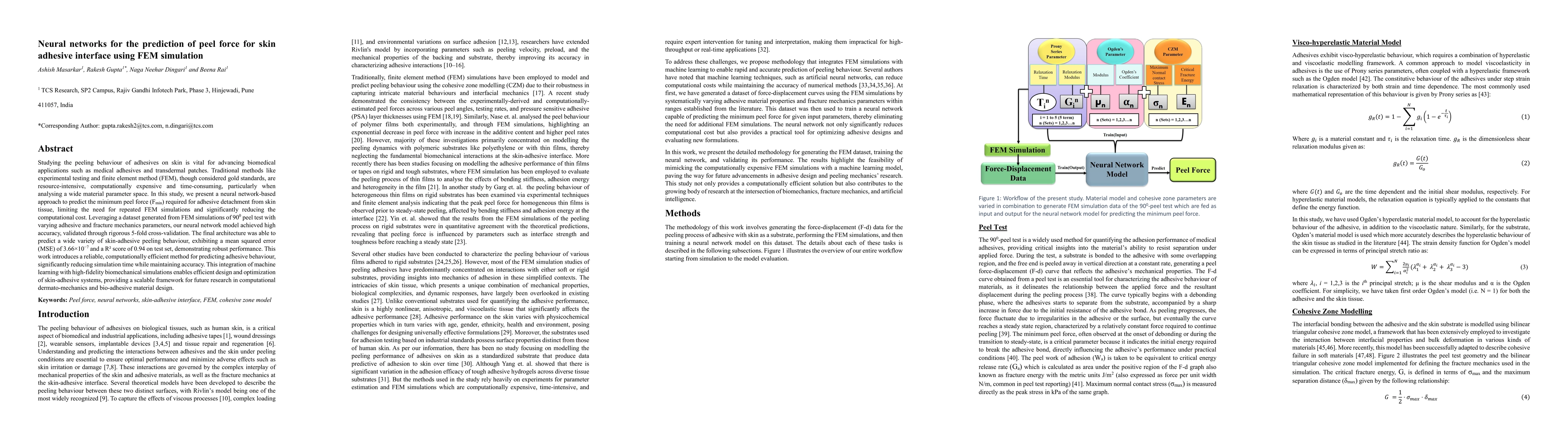 Studying the peeling behaviour of adhesives on skin is vital for advancing biomedical applications such as medical adhesives and transdermal patches. Traditional methods like experimental testing and finite element method (FEM), though considered gold standards, are resource-intensive, computationally expensive and time-consuming, particularly when analysing a wide material parameter space. In this study, we present a neural network-based approach to predict the minimum peel force (F_min) required for adhesive detachment from skin tissue, limiting the need for repeated FEM simulations and significantly reducing the computational cost. Leveraging a dataset generated from FEM simulations of 90 degree peel test with varying adhesive and fracture mechanics parameters, our neural network model achieved high accuracy, validated through rigorous 5-fold cross-validation. The final architecture was able to predict a wide variety of skin-adhesive peeling behaviour, exhibiting a mean squared error (MSE) of 3.66*10^-7 and a R^2 score of 0.94 on test set, demonstrating robust performance. This work introduces a reliable, computationally efficient method for predicting adhesive behaviour, significantly reducing simulation time while maintaining accuracy. This integration of machine learning with high-fidelity biomechanical simulations enables efficient design and optimization of skin-adhesive systems, providing a scalable framework for future research in computational dermato-mechanics and bio-adhesive material design.