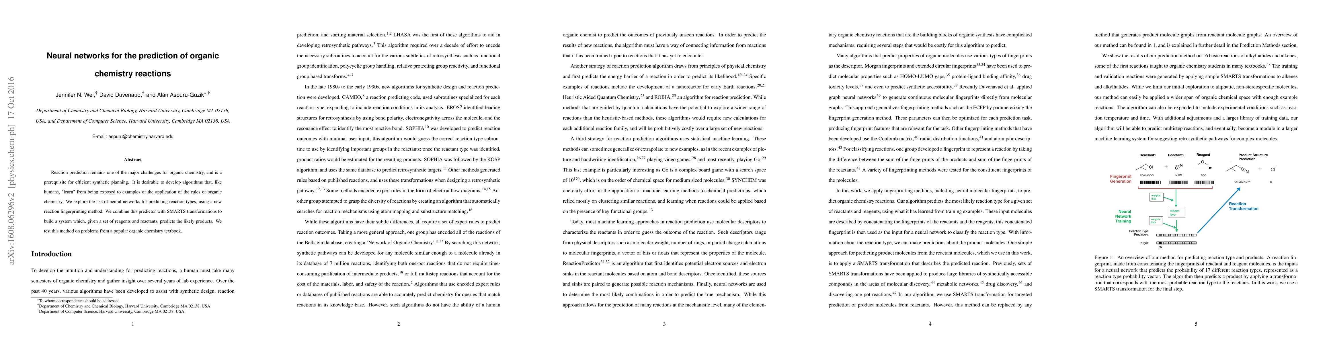 This paper investigates the use of neural networks to predict organic chemistry reaction outcomes by employing a novel reaction fingerprinting method and SMARTS transformations. The proposed system aims to mimic human learning in synthetic planning by predicting likely products from given reagents and reactants, tested on examples from a standard textbook.