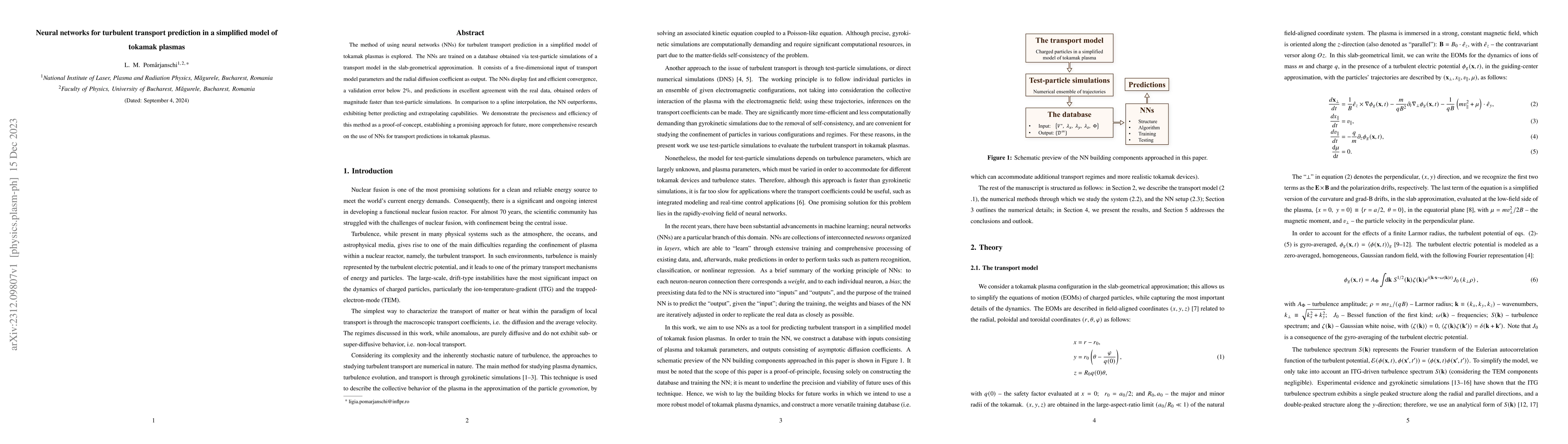 The paper presents a methodology for developing NNs to predict turbulent transport, including database construction, NN architecture, training, and validation.