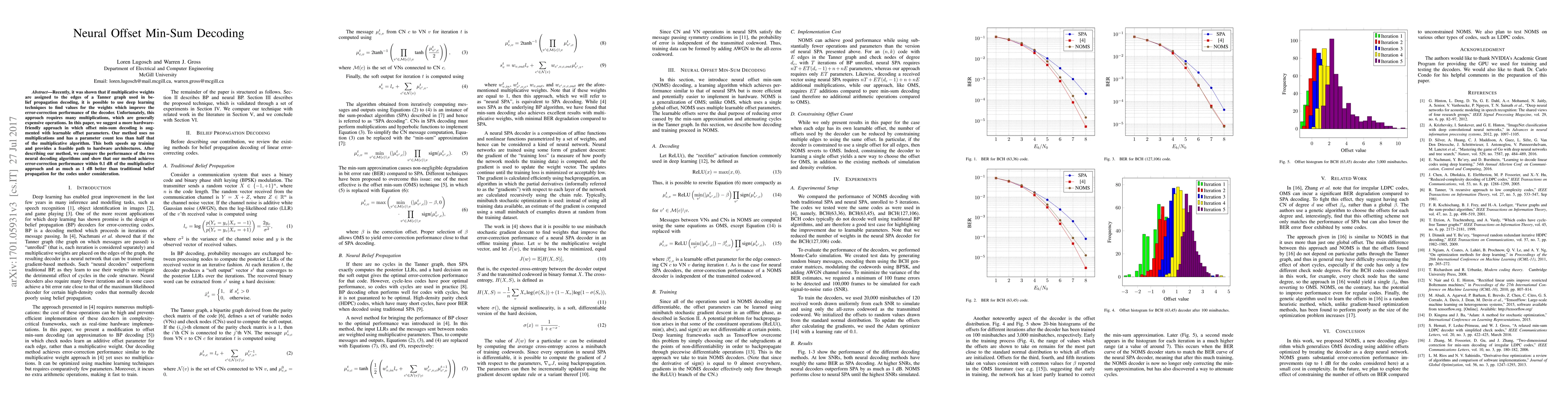 This paper proposes a neural offset min-sum decoding method that uses no multiplications, significantly reducing computational cost and hardware requirements. Compared to the multiplicative approach, it achieves comparable error-correction performance within 0.1 dB and can outperform traditional belief propagation by up to 1 dB.