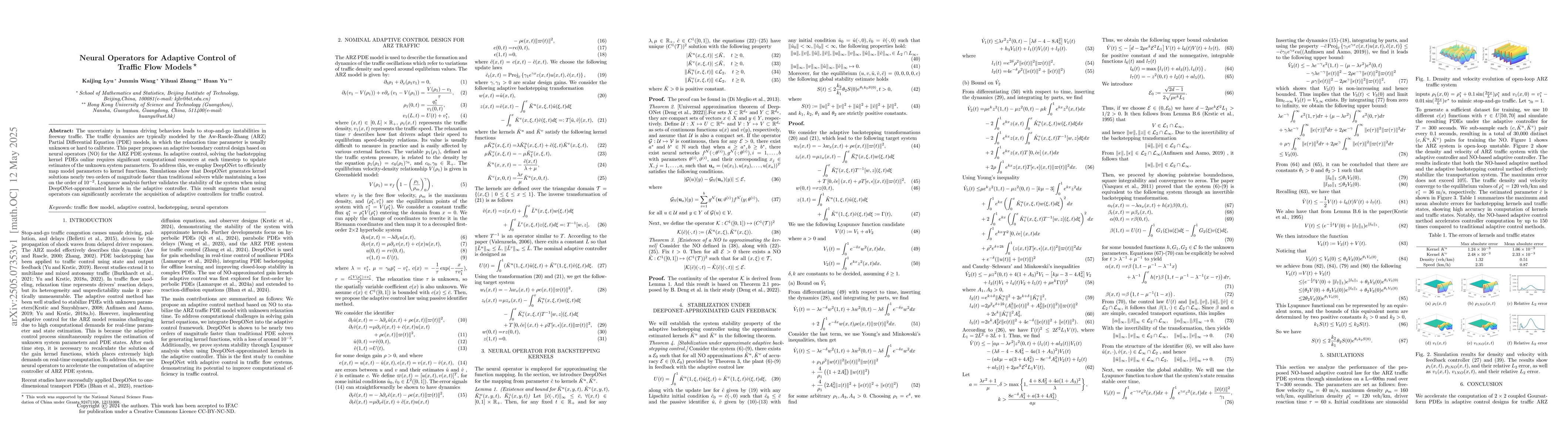 Researchers developed an adaptive control system using neural operators to stabilize traffic flow models, achieving nearly 2x speedup over traditional methods while maintaining stability.