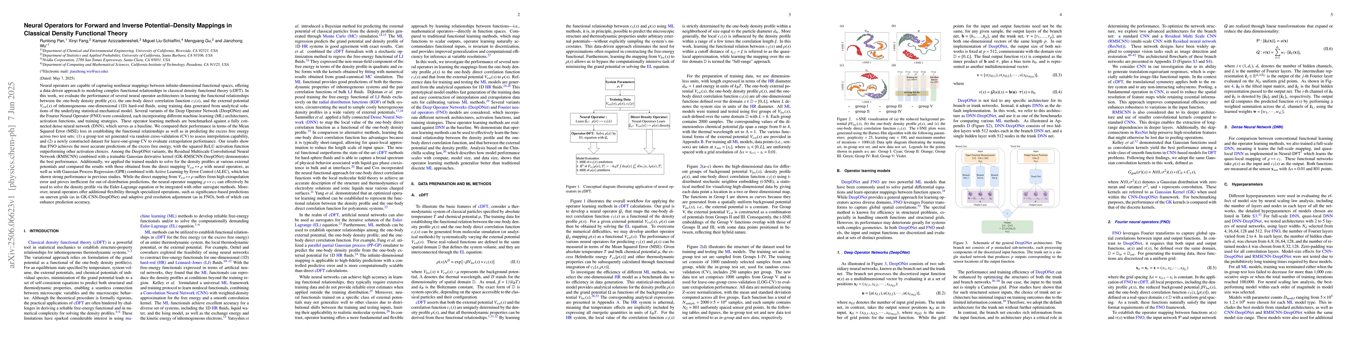 Researchers developed neural operators to predict complex relationships in density functional theory, achieving accurate excess free energy predictions and outperforming traditional methods in some cases.