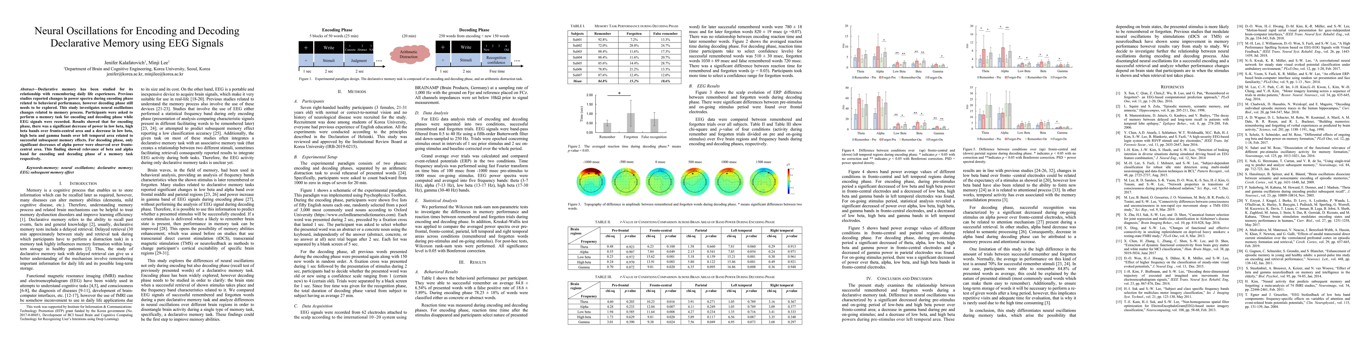 This study investigates neural oscillations in EEG signals during encoding and decoding phases of declarative memory tasks. Results indicate significant decreases in low and high beta, and gamma bands during encoding, particularly in fronto-central and left temporal areas, correlating with successful memory performance. During decoding, only alpha band power decreases were significant over fronto-central areas, highlighting the distinct roles of beta and alpha oscillations in memory encoding and decoding.